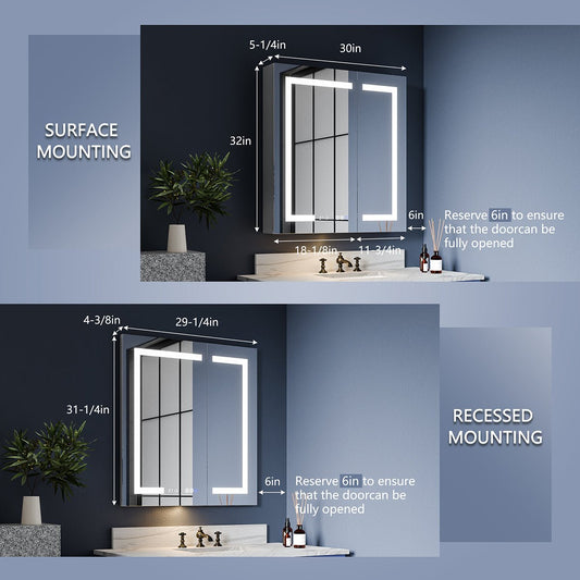 Rim 30" W x 32" H Lighted Medicine Cabinet Recessed or Surface LED Medicine Cabinet with Outlets & USBs