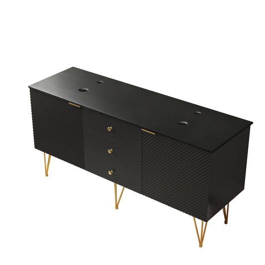 Exbrite 60" Freestanding Black Plywood Cabinet with 3 Drawers and 2 Doors, Black Sintered Stone Top, NO Basin, NO Faucet and Sink Cover|GEMA