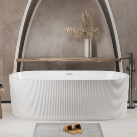 WSPRO-CH Allsumhome 59'Linear AcrylicFreestanding Bathtub Stand Alone Soaker Tub, Glossy White Acrylic, POP-UP Chrome Drain, cUPC Certified