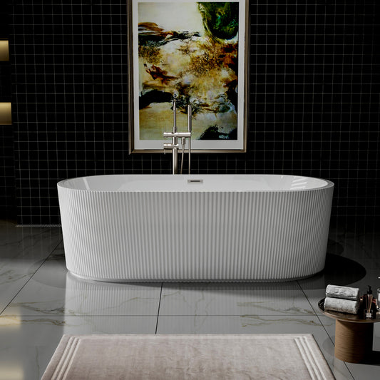 WSP-NK Exbrite 67' Acrylic Freestanding Bathtub, Unique Pleated Design, Glossy White, Brushed Nickel Overflow and Pop-Up Drain, cUPC Certified