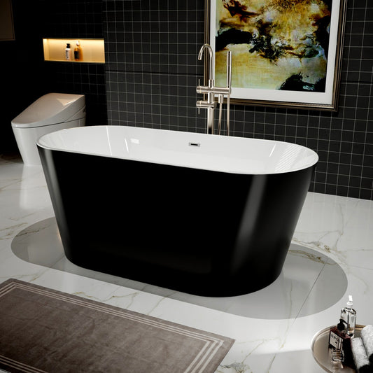 PY Exbrite 59' Acrylic Freestanding Bathtub, Stand Alone Soaking Tub, Glossy Black Acrylic, Toe-tap Chrome Drain, cUPC Certified