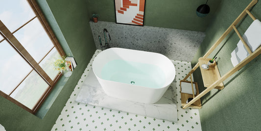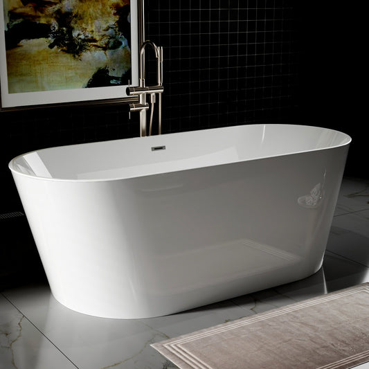 HGBR Exbrite 55' Acrylic Freestanding Bathtub, Small Soaking tub, Glossy White, Pop Up Chrome Drain, cUPC Certified