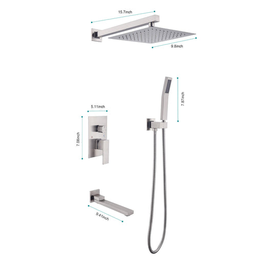 4PSQ-L Exbrite 10' Rain Shower Head Systems Wall Mounted Shower,Brushed Nickel