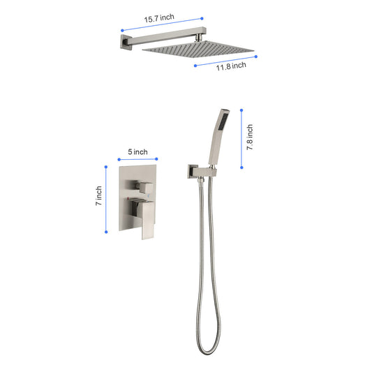 3PSQ Exbrite 12' Rain Shower Head Systems Wall Mounted Shower,Brushed Nickel