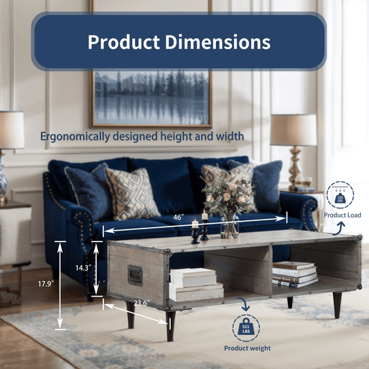 MangoLuxe Coffee Tables,46" Small Coffee Table with Storage Shelf,Modern Wood Coffee Table for Living Room, Office, Reception Room,Gray Wash