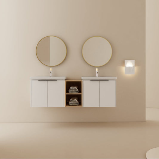 ExBrite 60 Inch Soft Close Doors Double Sink Bathroom Vanity Small Storage Shelves