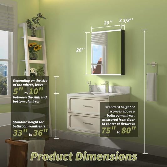ExBrite 20" W x 26" H LED Bathroom Light Medicine Cabinet with Mirrors Left Side