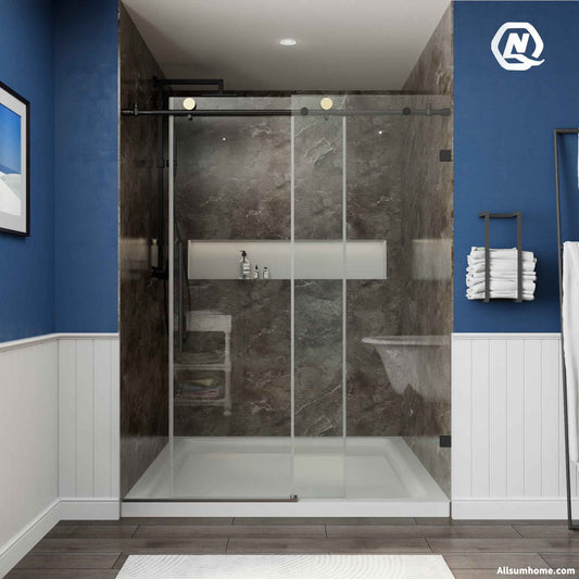 Anchor-W Allsumhome Frameless Sliding Shower Door 72 in W x 74 in H,Matte Black,Frameless Shower Door with 5/16" (8mm) Clear Tempered Glass,Easy Clean