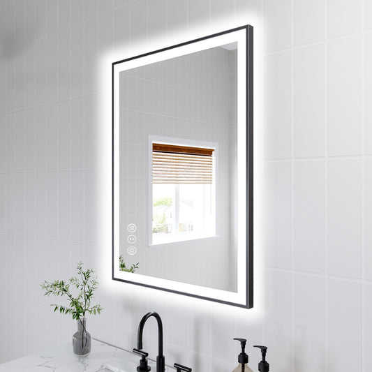 Apex-Noir 24"x32" Framed LED Lighted Bathroom Mirror
