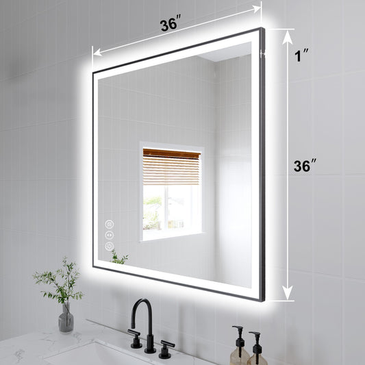 Apex-Noir 36"x36" Framed LED Lighted Bathroom Mirror
