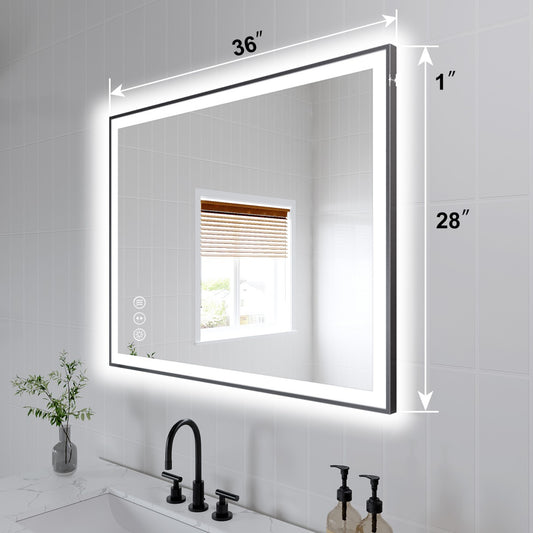 Apex-Noir 28"x36" Framed LED Lighted Bathroom Mirror