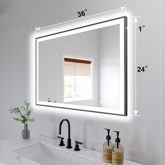 Apex-Noir 24"x36" Framed LED Lighted Bathroom Mirror