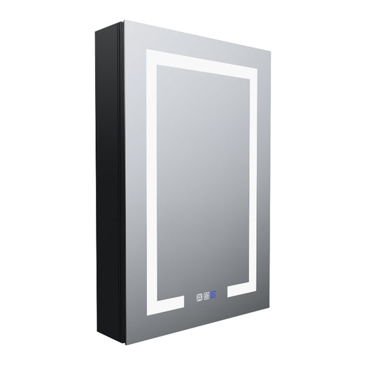 Boost-M1 20" W x 30" H Light Medicine Cabinet Recessed or Surface Mount Aluminum Adjustable Shelves Vanity Mirror Cabinet, Black Frame, Hinge on the Right