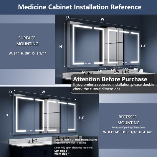 Boost-M2 84" W x 36" H LED Lighted Bathroom Medicine Cabinet with Mirror and Clock