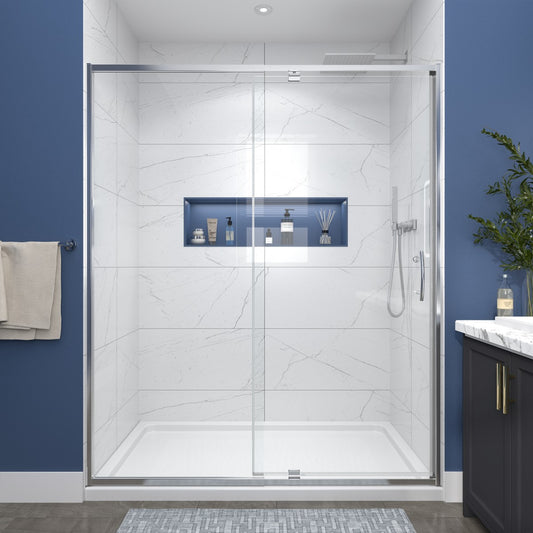 Flexi Showers 56-60" W x 71" H Glass Shower Doos Semi-Frameless,6mm Clear Tempered Glass Panel, Chrome Finish