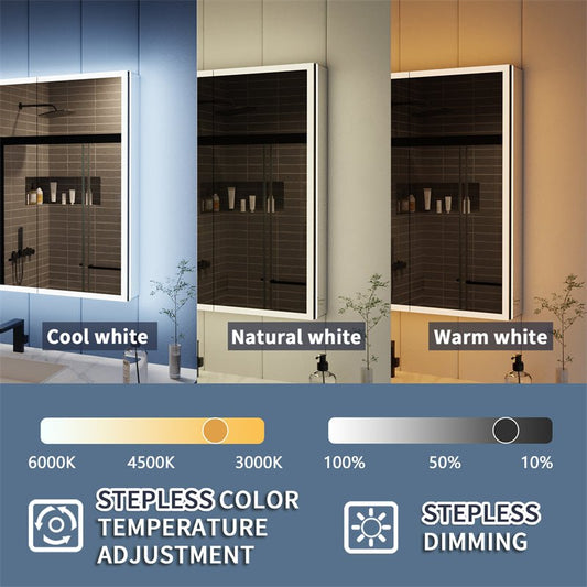Illusion 24" x 32" LED Lighted Medicine Cabinet with Magnifiers Front and Back Light,Hinge on the Right
