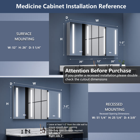 Boost-M1 52" W x 26" H Combination Medicine Cabinet with Mirror led Lighted Medicine Cabinet