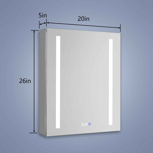 Rim 20" W x 30" H Lighted Medicine Cabinet Recessed or Surface LED Medicine Cabinet with Outlets & USBs,Hinge on the right
