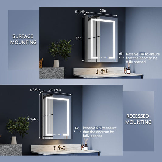 Boost-M2 24" W x 32" H LED Lighted Bathroom Medicine Cabinet with Mirror and Clock, Right Hinge