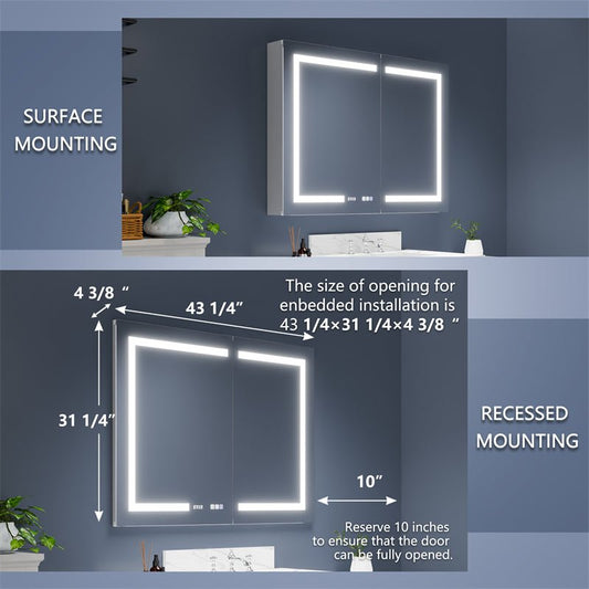 Boost-M2 44" W x 32" H Bathroom Lights Resessed and Surface Mount Medicine Cabinets with Vanity Mirror Recessed or Surface