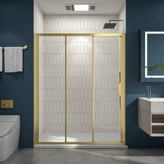 Nexus 56-60W x 70.H Easy Clean Framed Tri-Fold Sliding Shower Door with 1/4" (6mm) Clear SGCC Tempered Glass,Brushed Golde Finish