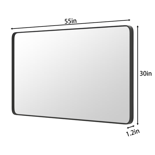 Noir 55" x 30" Vanity Mirror – Modern, Elegant, Rectangular Wall Mirror with Tempered Glass, Shatterproof, Rust-Resistant, Matte Black Frame for Bathroom, Living Room & Hallway