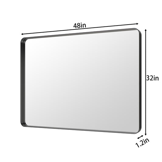 Noir 48" x 32" Vanity Mirror – Modern, Elegant, Rectangular Wall Mirror with Tempered Glass, Shatterproof, Rust-Resistant, Matte Black Frame for Bathroom, Living Room & Hallway