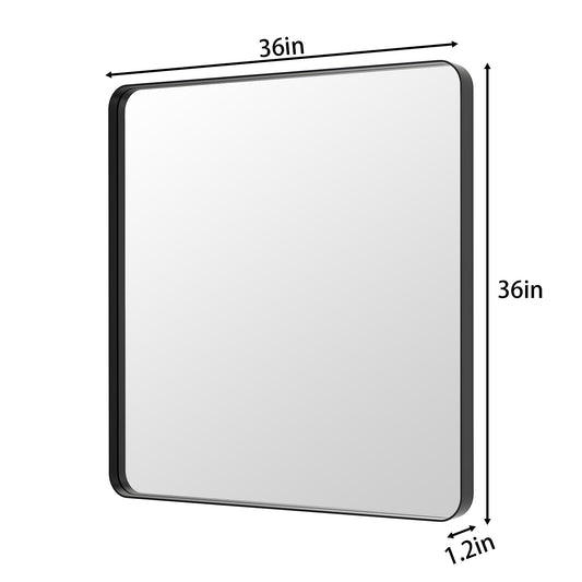Noir 36" x 36" Vanity Mirror – Modern, Elegant, Rectangular Wall Mirror with Tempered Glass, Shatterproof, Rust-Resistant, Matte Black Frame for Bathroom, Living Room & Hallway