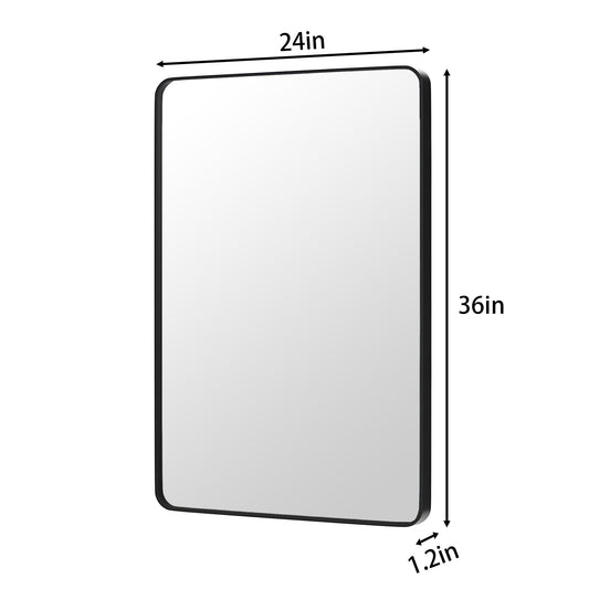 Noir 24" x 36" Vanity Mirror – Modern, Elegant, Rectangular Wall Mirror with Tempered Glass, Shatterproof, Rust-Resistant, Matte Black Frame for Bathroom, Living Room & Hallway