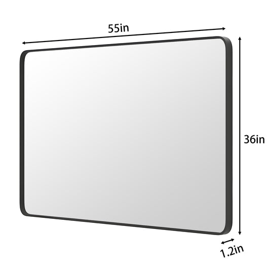 Noir 55" x 36" Vanity Mirror – Modern, Elegant, Rectangular Wall Mirror with Tempered Glass, Shatterproof, Rust-Resistant, Matte Black Frame for Bathroom, Living Room & Hallway