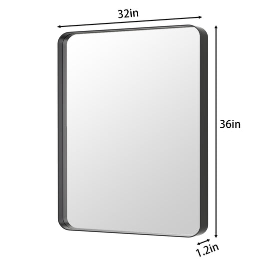Noir 32" x 36" Vanity Mirror – Modern, Elegant, Rectangular Wall Mirror with Tempered Glass, Shatterproof, Rust-Resistant, Matte Black Frame for Bathroom, Living Room & Hallway