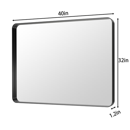 Noir 40" x 32" Vanity Mirror – Modern, Elegant, Rectangular Wall Mirror with Tempered Glass, Shatterproof, Rust-Resistant, Matte Black Frame for Bathroom, Living Room & Hallway