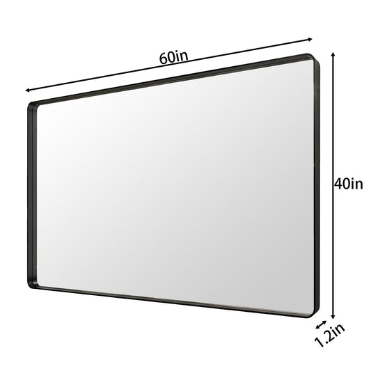 Noir 60" x 40" Vanity Mirror – Modern, Elegant, Rectangular Wall Mirror with Tempered Glass, Shatterproof, Rust-Resistant, Matte Black Frame for Bathroom, Living Room & Hallway