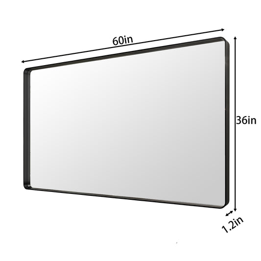 Noir 60" x 36" Vanity Mirror – Modern, Elegant, Rectangular Wall Mirror with Tempered Glass, Shatterproof, Rust-Resistant, Matte Black Frame for Bathroom, Living Room & Hallway