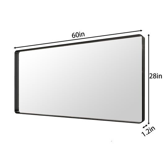 Noir 60" x 28" Vanity Mirror – Modern, Elegant, Rectangular Wall Mirror with Tempered Glass, Shatterproof, Rust-Resistant, Matte Black Frame for Bathroom, Living Room & Hallway