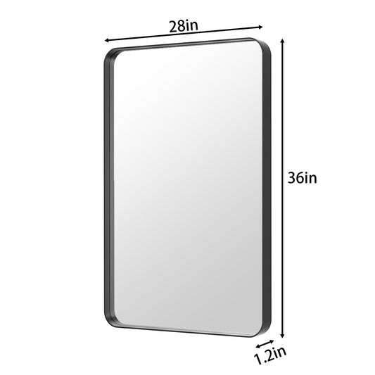 Noir 28" x 36" Vanity Mirror – Modern, Elegant, Rectangular Wall Mirror with Tempered Glass, Shatterproof, Rust-Resistant, Matte Black Frame for Bathroom, Living Room & Hallway