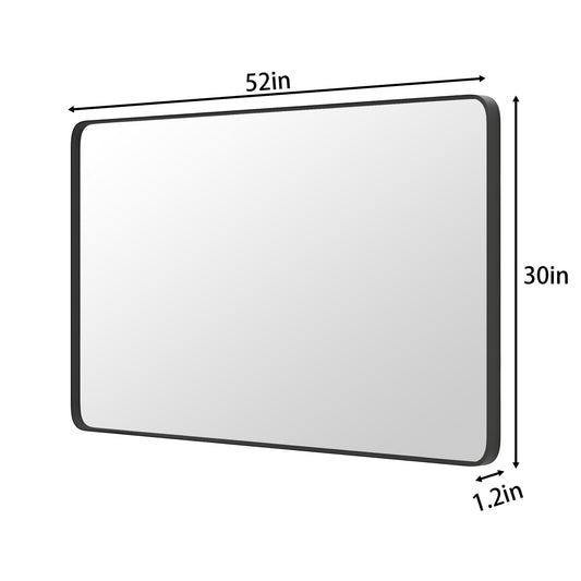 Noir 52" x 30" Vanity Mirror – Modern, Elegant, Rectangular Wall Mirror with Tempered Glass, Shatterproof, Rust-Resistant, Matte Black Frame for Bathroom, Living Room & Hallway