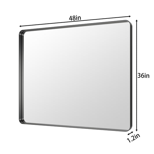 Noir 48" x 36" Vanity Mirror – Modern, Elegant, Rectangular Wall Mirror with Tempered Glass, Shatterproof, Rust-Resistant, Matte Black Frame for Bathroom, Living Room & Hallway