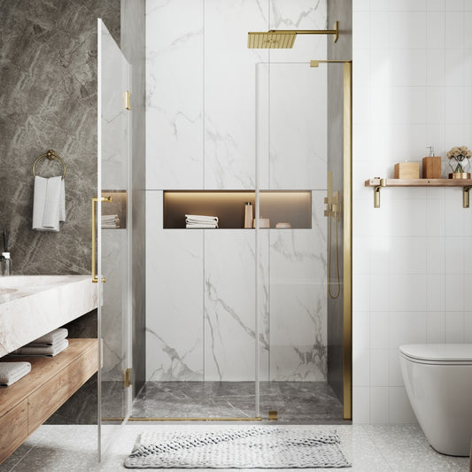 Flexi-L 50-54" W X 70" H Bathroom Glass Shower Doors,Frameless Brushed Gold,Tempered Glass Shower Door With Handle