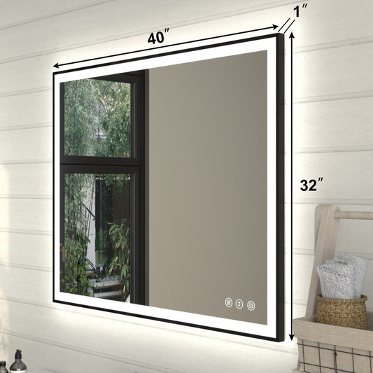 Apex-Noir 40"x32" Framed LED Lighted Bathroom Mirror