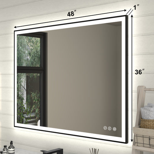 Apex-Noir 48"x36" Framed LED Lighted Bathroom Mirror