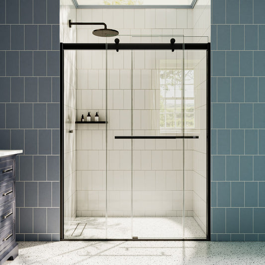 Glide 56-60"W x 70"H Black Frame Clear Tempered Sliding Glass Shower Doors for Bathroom