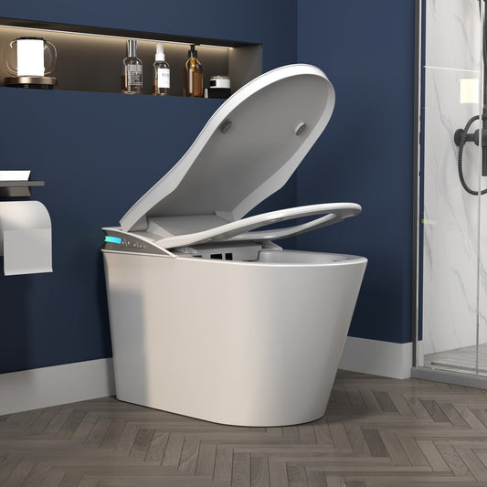 ExBrite Smart Bidet Toilet with Remote Control.Raised Tankless Toilet with LED Display. Auto Open/AutoHeated. Seat Toilet Bidet with Aromatherapy System.Warm Water And Dry.Off Seat Flush.Foot Sensor.