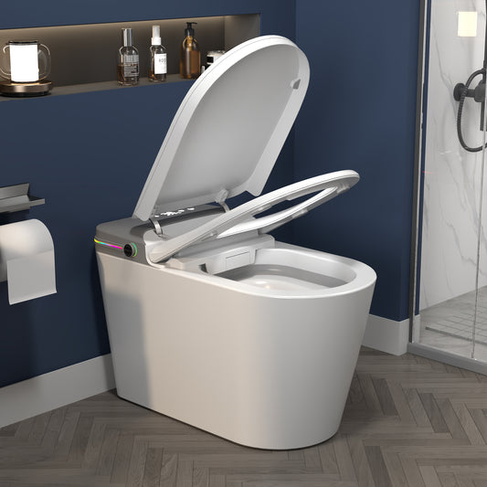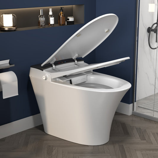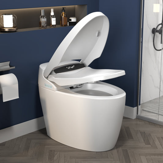 ExBrite Smart Toilet, Dual Flush 1-1.28 GPF, Tank less with Adjustable Temp Heated Seat, Foot sensor, Night Light,Power Outage Flushing
