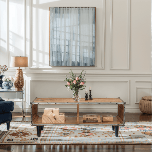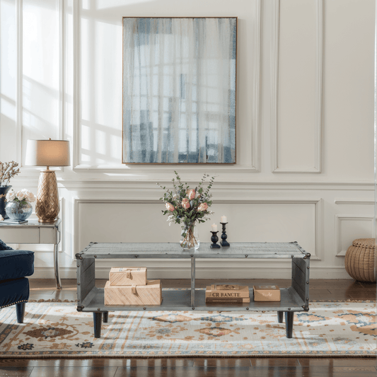 MangoLuxe-N Coffee Tables,46" Small Coffee Table with Storage Shelf,Modern Wood Coffee Table for Living Room, Office, Reception Room,Gray Wash