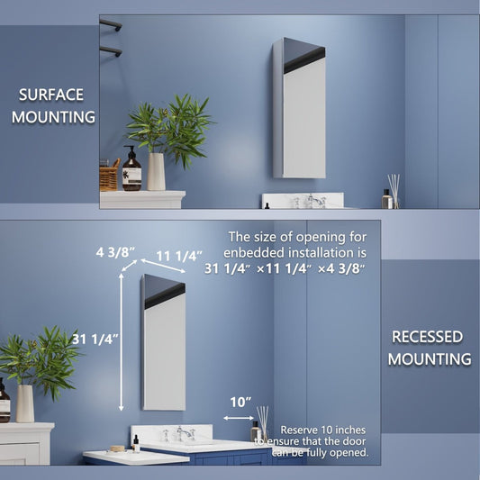 Rim 12 in. W X 32 in. H Single Medicine Cabinet without Light