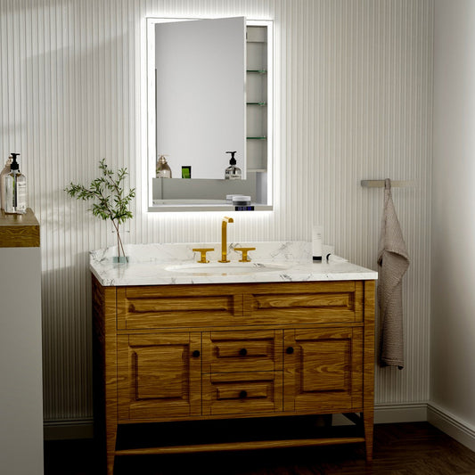 Ample 48" W x 36" H LED Lighted Chrome Medicine Cabinet with Mirror and Shelves for Bathroom Recessed or Surface Mount