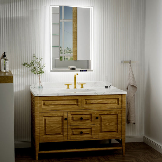 Glacy Series 48" x 32" Rectangle LED Bathroom Mirror – Ice Textures Edge, Smart Dimming, Defogger, ETL Certified