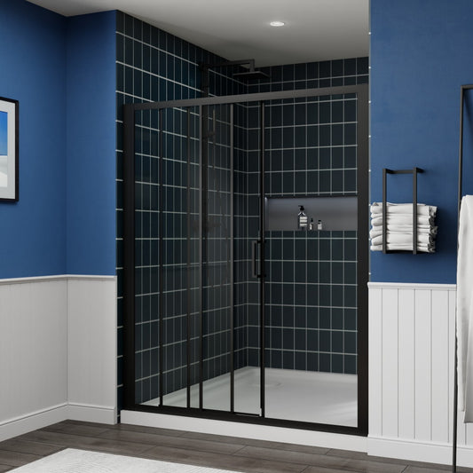 Nexus 44-48W x 70.H Easy Clean Framed Tri-Fold Sliding Shower Door with 1/4" (6mm) Clear SGCC Tempered Glass,Matte Black Finish