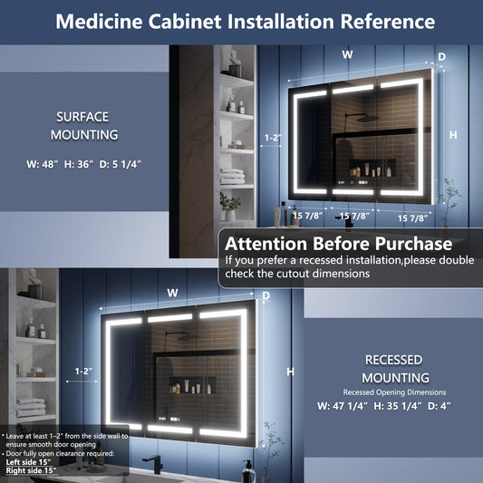 Illusion-B 48" x 36" LED Lighted Inset Mirrored Medicine Cabinet with Magnifiers Front and Back Light